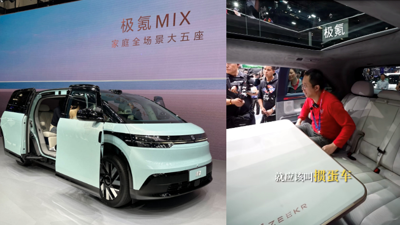 左:極氪Mix展(zhan)檯(tai)(裏斯汽車(che)事業部(bu)攝) 右:極氪Mix內(nei)部(bu)(圖源網絡)